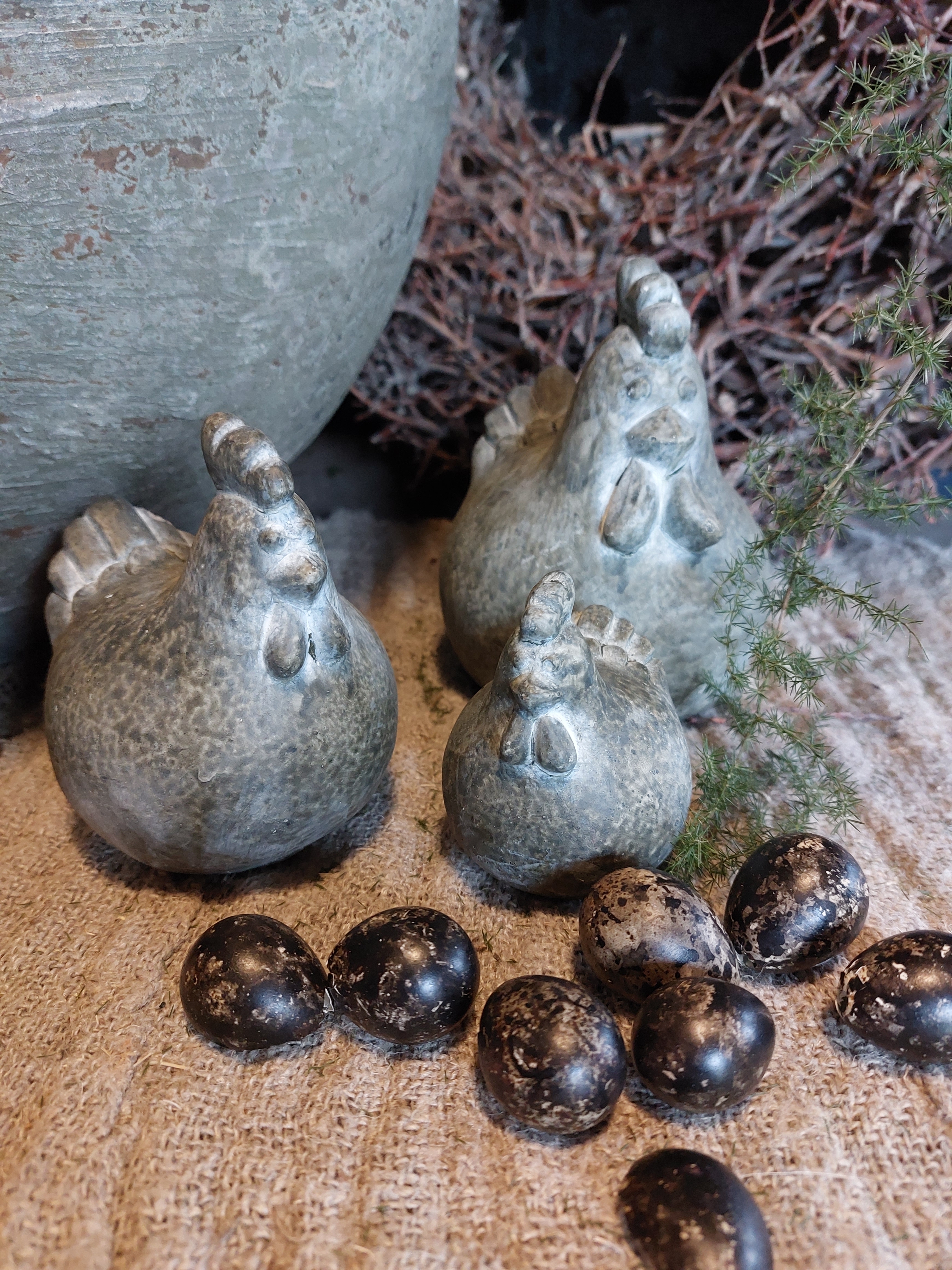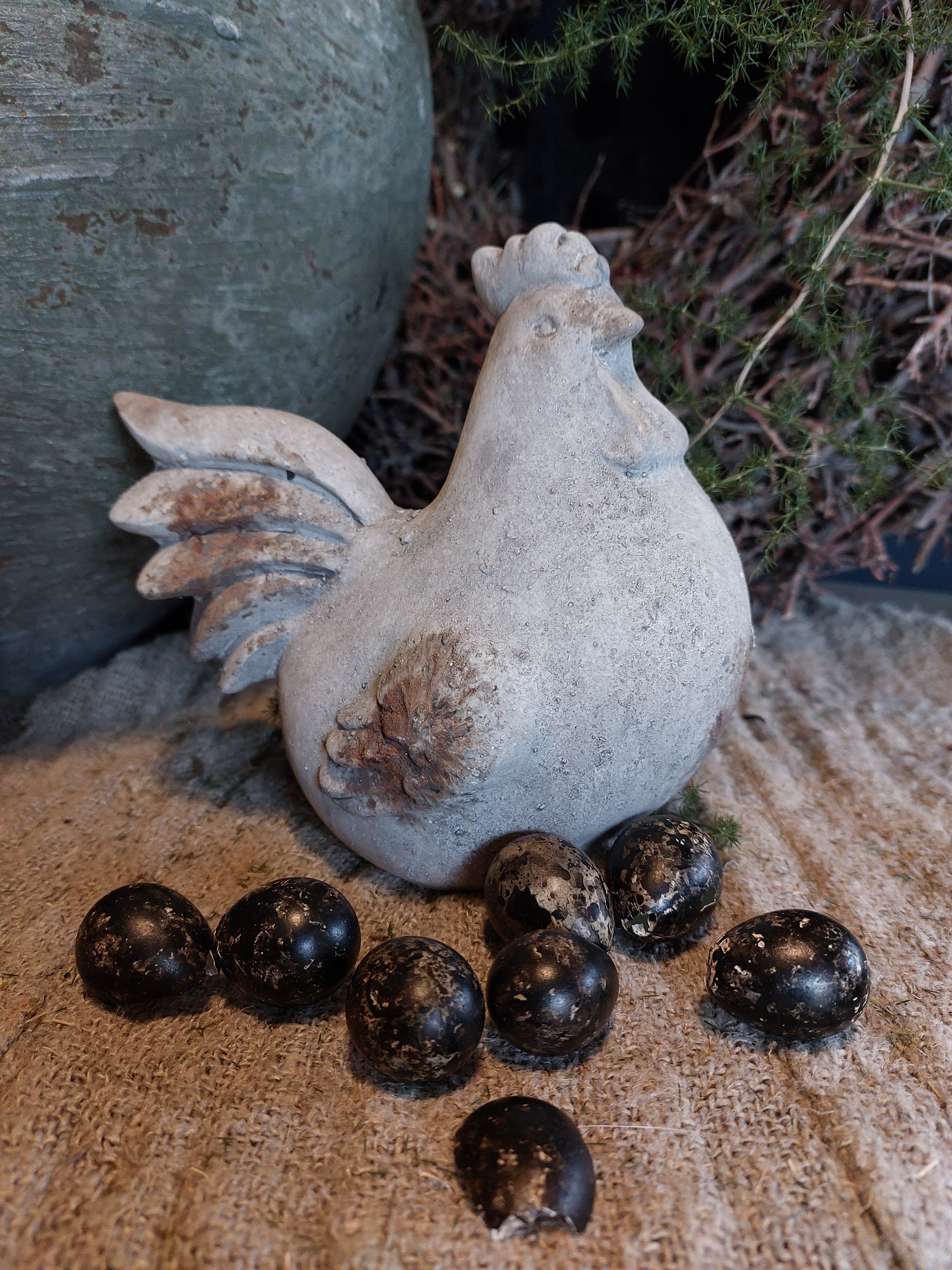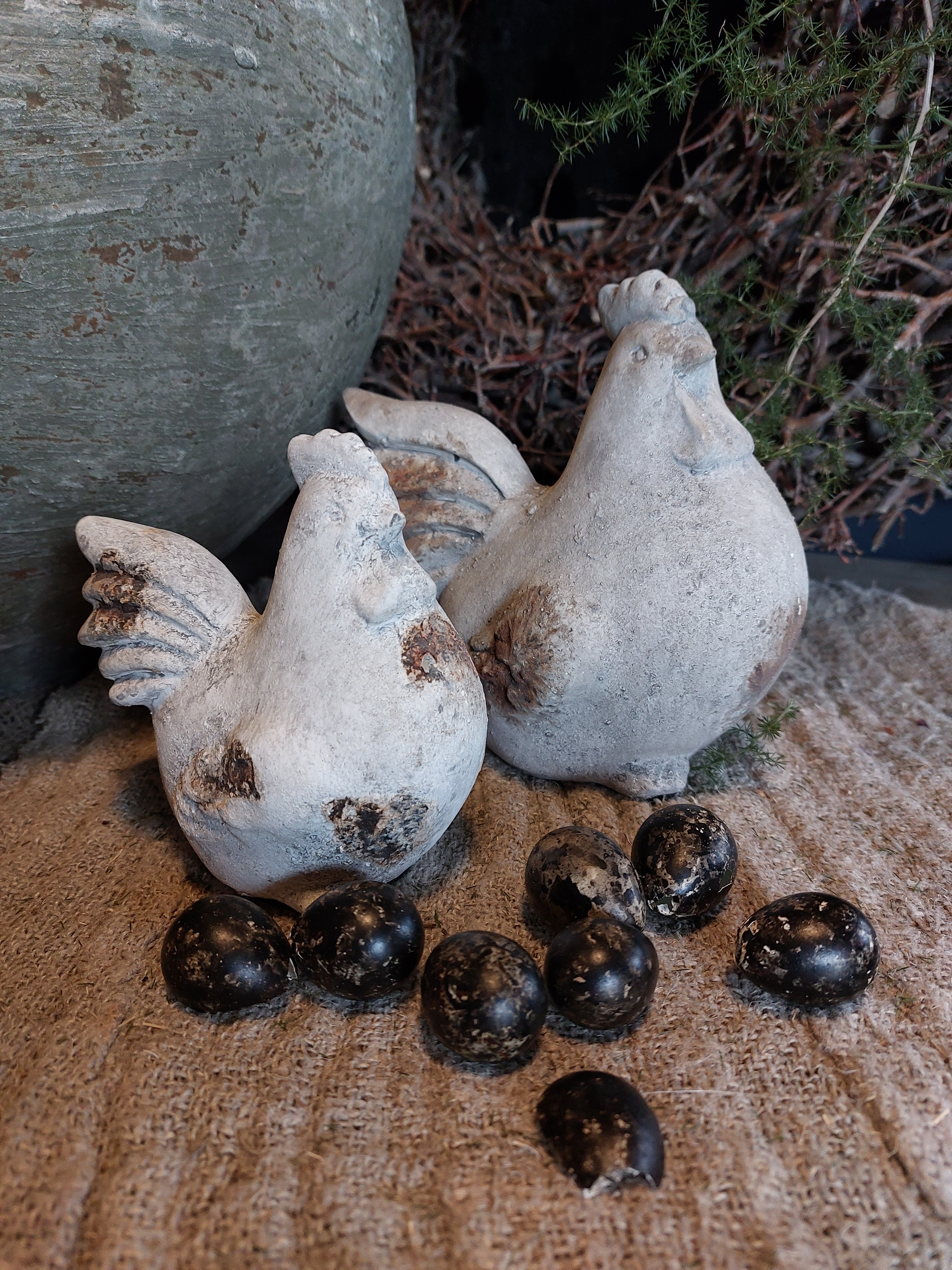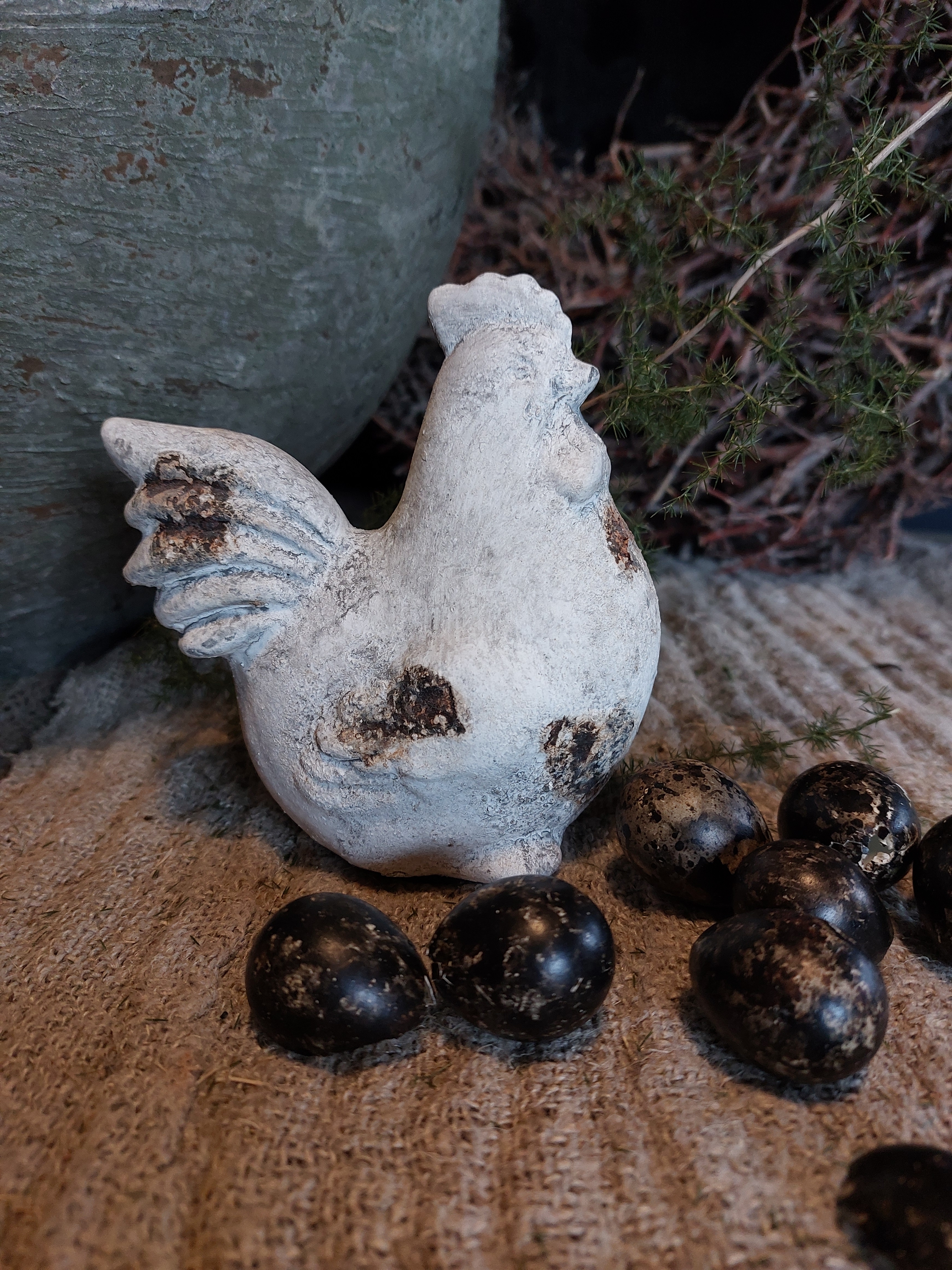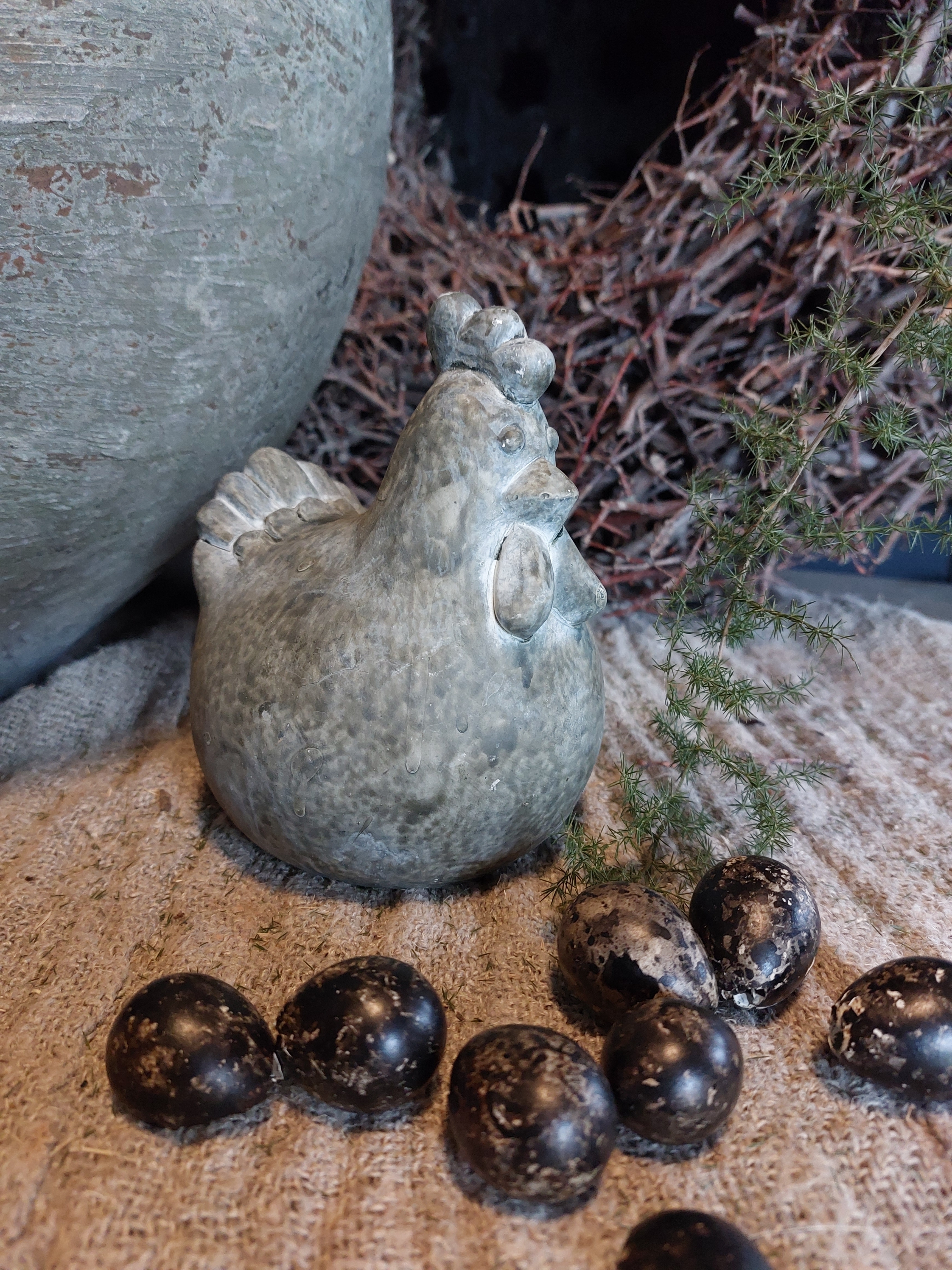 Stenen kip, in een rustiek uiterlijk. Leuk om te combineren met eitjes en wat groen.