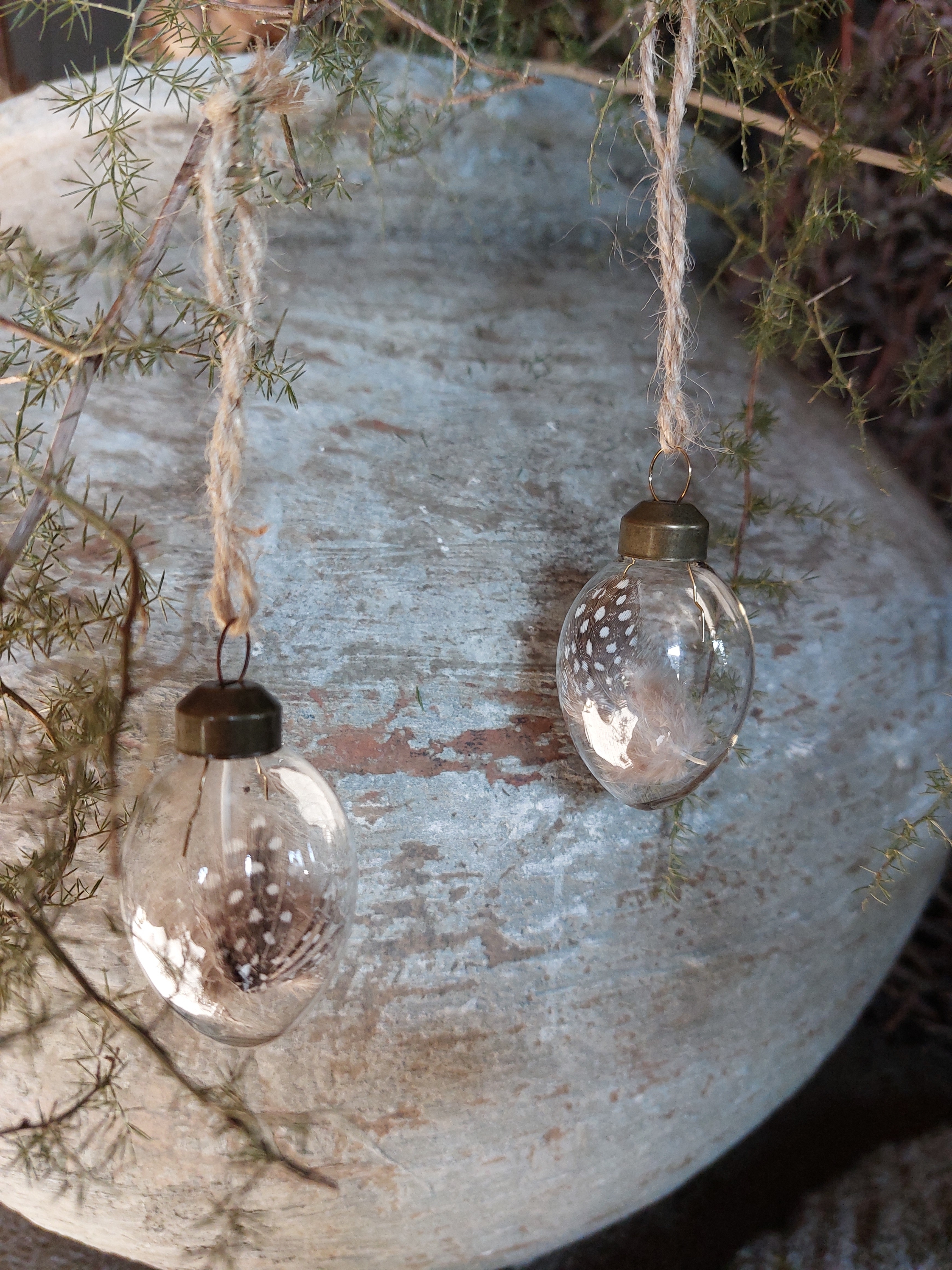 Deze glazen paaseitjes met veertje staan mooi in een paastak. De glazen paaseitjes staan mooi in een sober en landelijke interieur. Verpakt in een kraftdoosje van 9 stuks. 3x4,5cm.