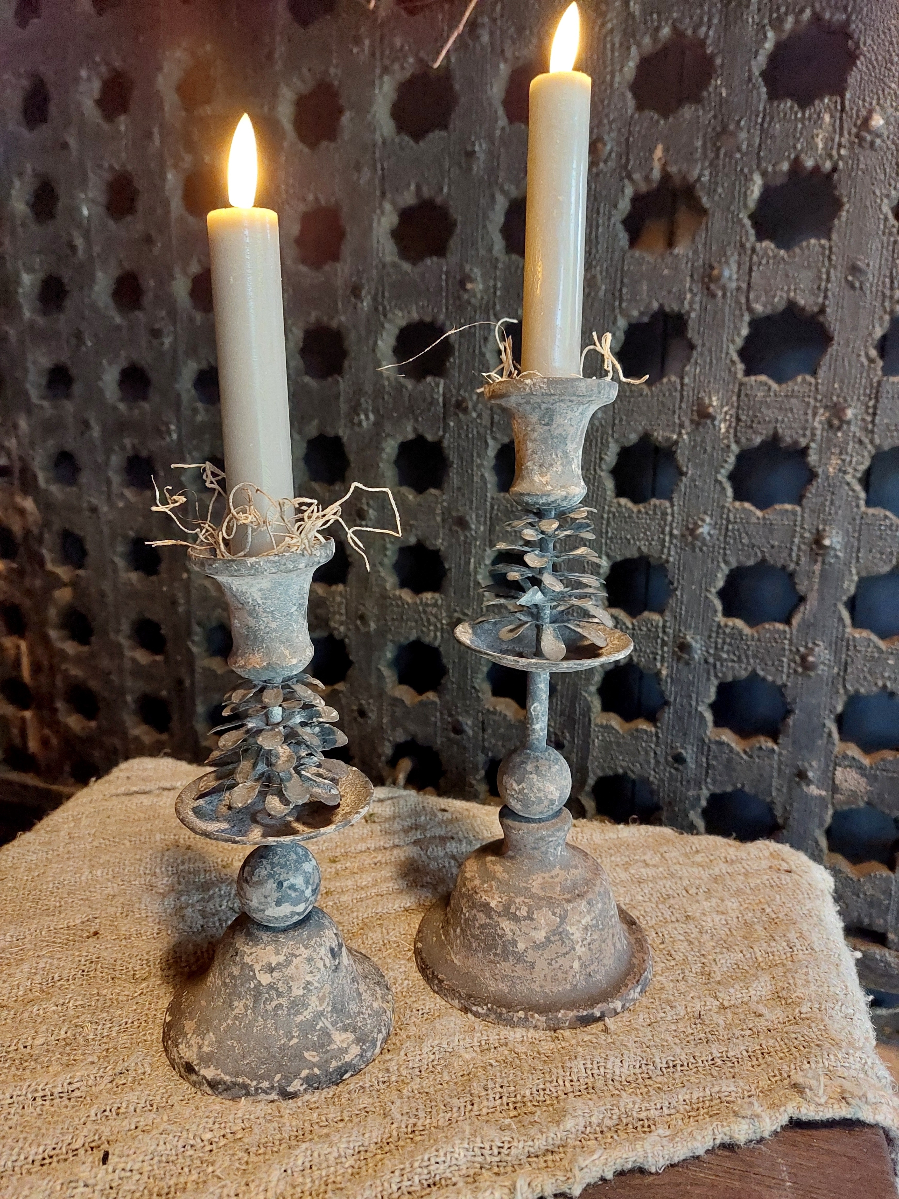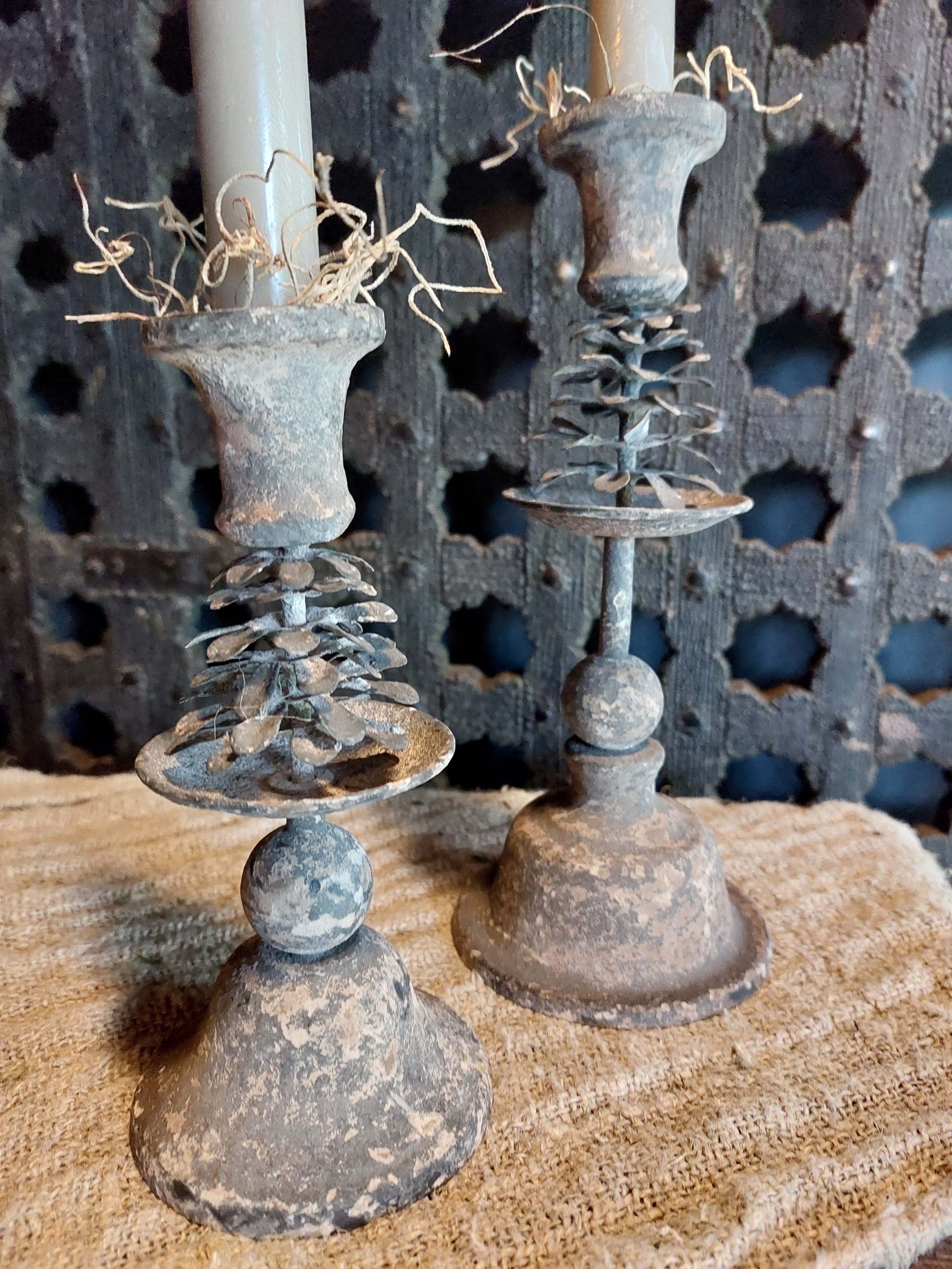 Breng warmte en sfeer in huis met deze prachtige dennenappel kandelaar. Het stoere metaal met doorleefde uitstraling en het unieke ontwerp in de vorm van een dennenappel zorgen voor een blikvanger die perfect past in een sober landelijk interieur. Plaats er een dinerkaars in en creëer direct een sfeervol geheel op een sidetable, dressoir of in een vensterbank. Mooi om los neer te zetten, maar ook stijlvol in combinatie met de andere maat.