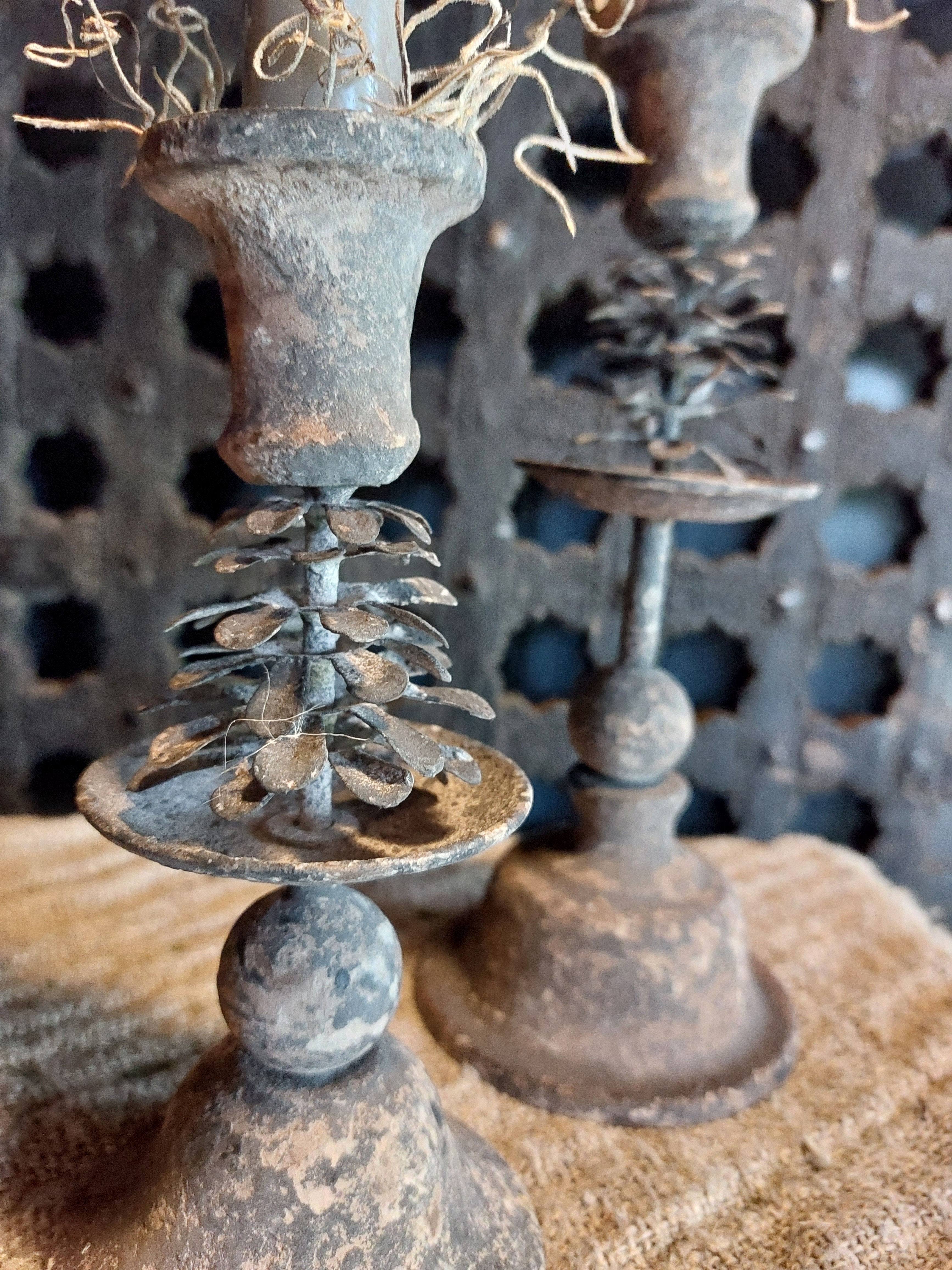 Breng warmte en sfeer in huis met deze prachtige dennenappel kandelaar. Het stoere metaal met doorleefde uitstraling en de vorm van een dennenappel zorgen voor een blikvanger die perfect past in een sober en landelijk interieur. Plaats er een dinerkaars in en creëer direct een sfeervol geheel op een sidetable, dressoir of in een vensterbank. Mooi om los neer te zetten, maar ook stijlvol in combinatie met de andere maat.