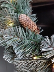 Prachtige volle kunst nobiliskrans met ledverlichting en dennenappels. In de krans zitten 50 ledlampjes verwerkt die warm wit licht geven. De doorsnee van de krans is 60 cm.