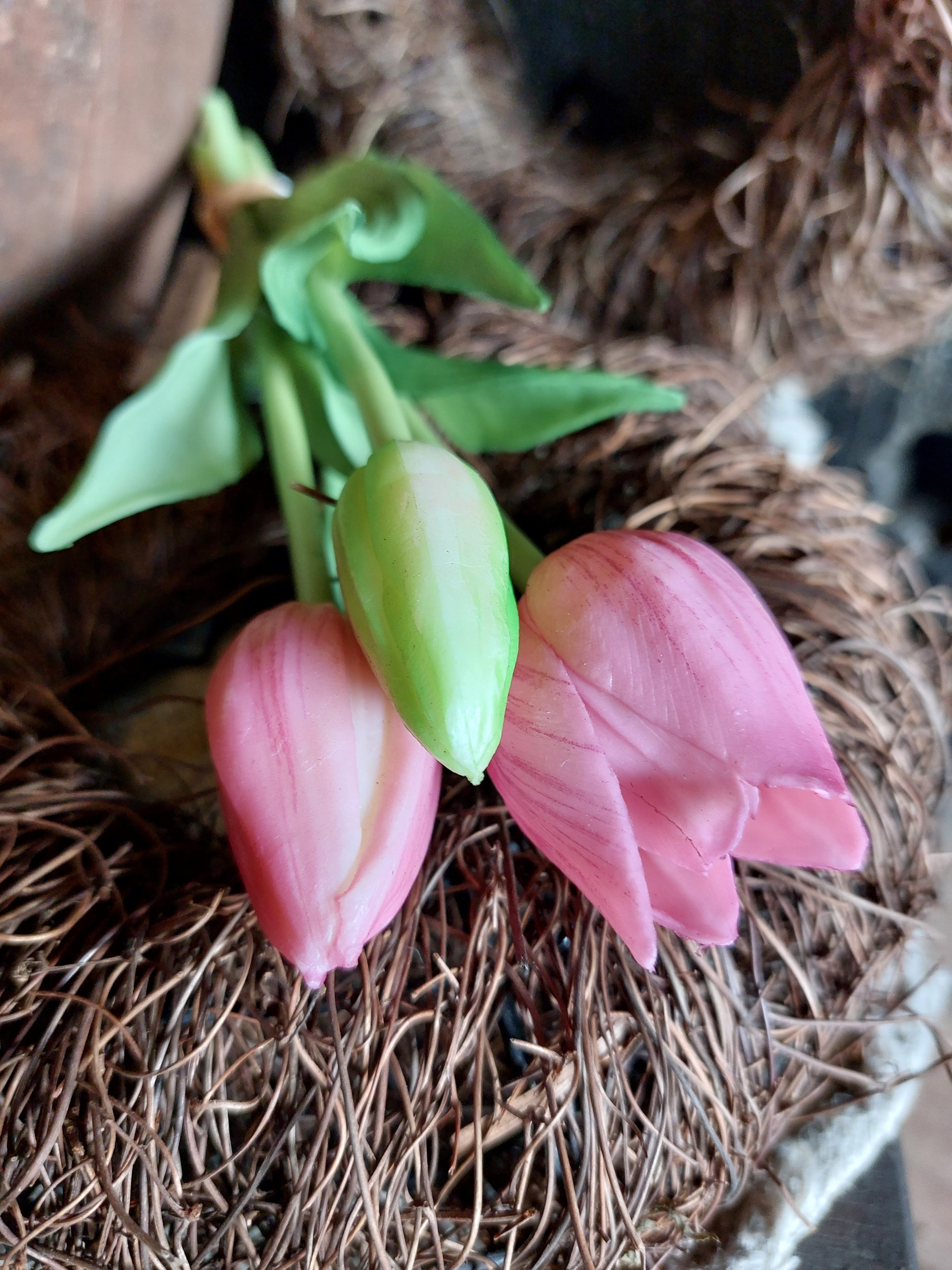 Met deze tulpjes haalt u direct het voorjaar in huis. In een mooie mauve kleur, met fris groene bladeren. Een bosje bestaat uit 3 stelen. Lengte: 25 cm.