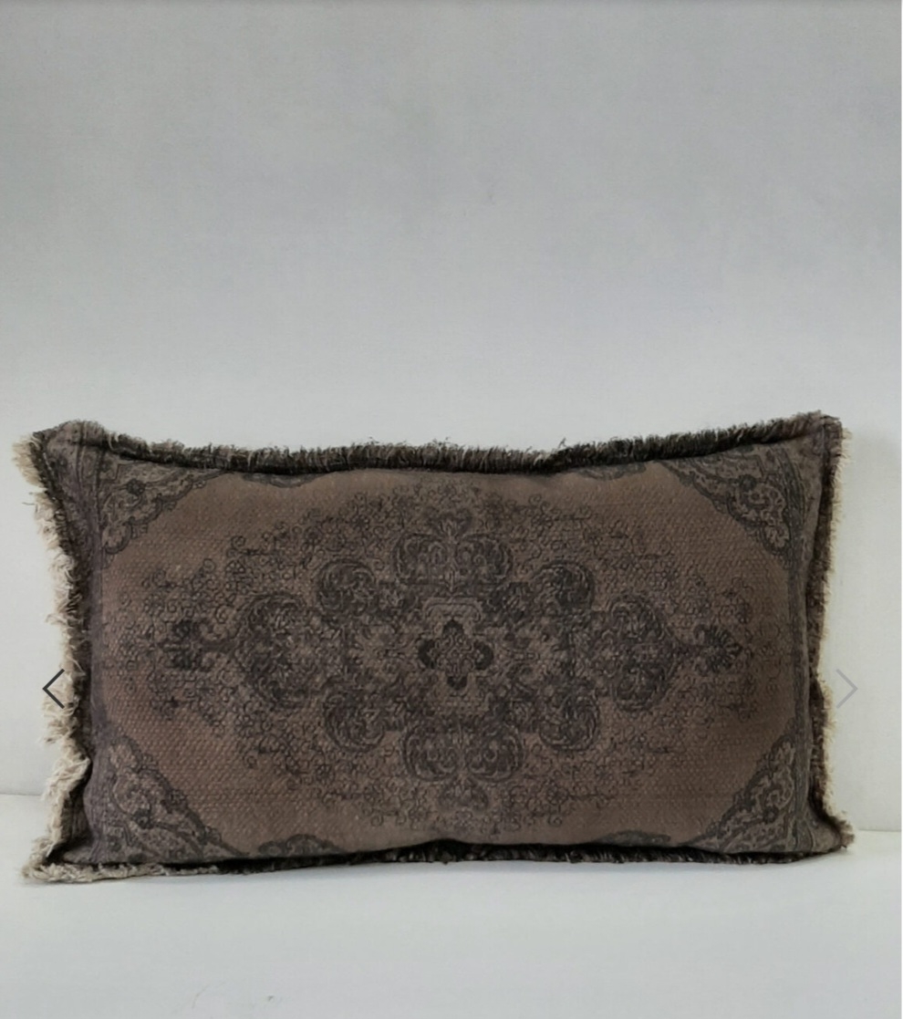 Alle kanten zijn afgewerkt met rafels, wat de kussen zijn karakteristieke look geeft.