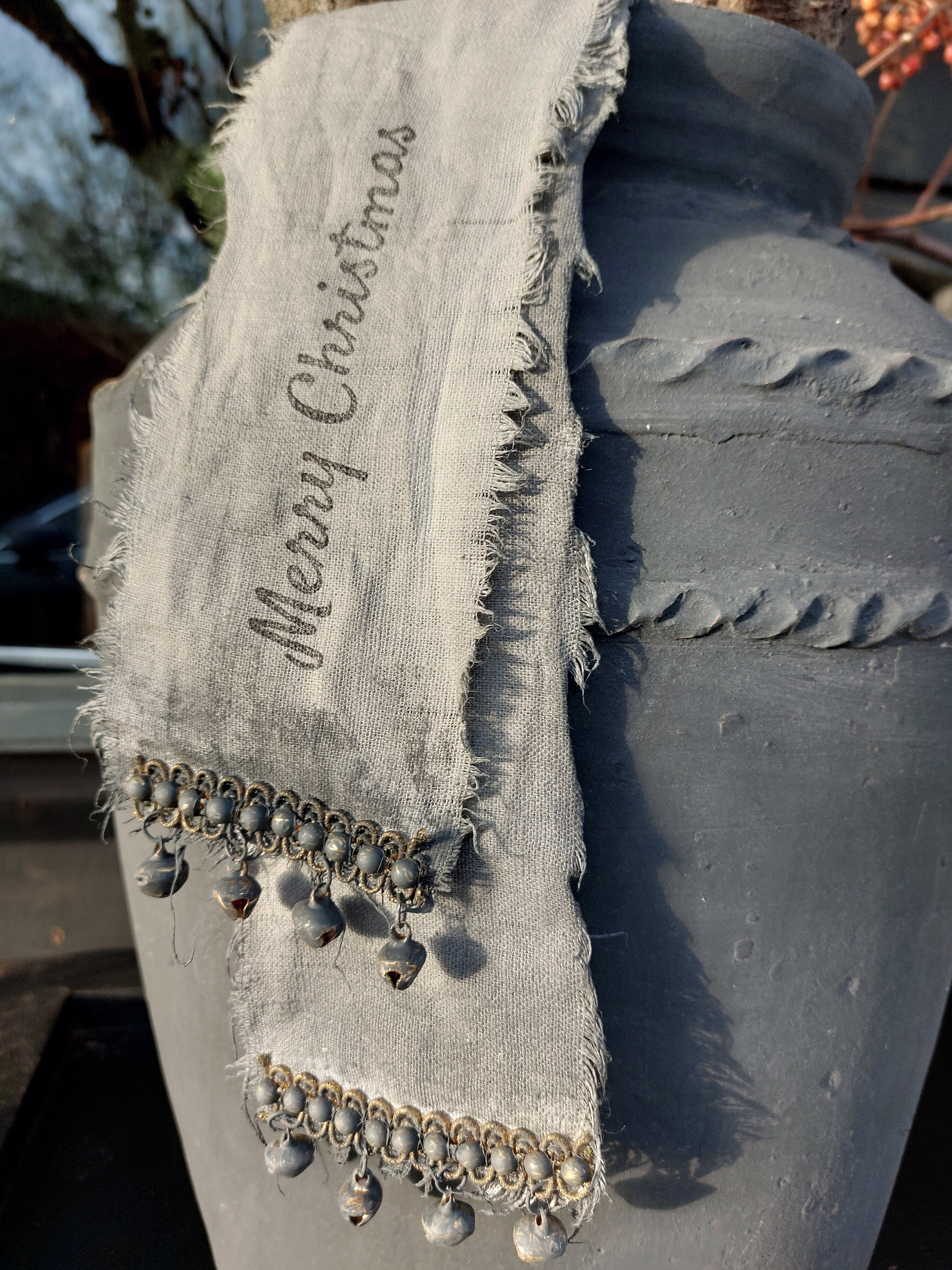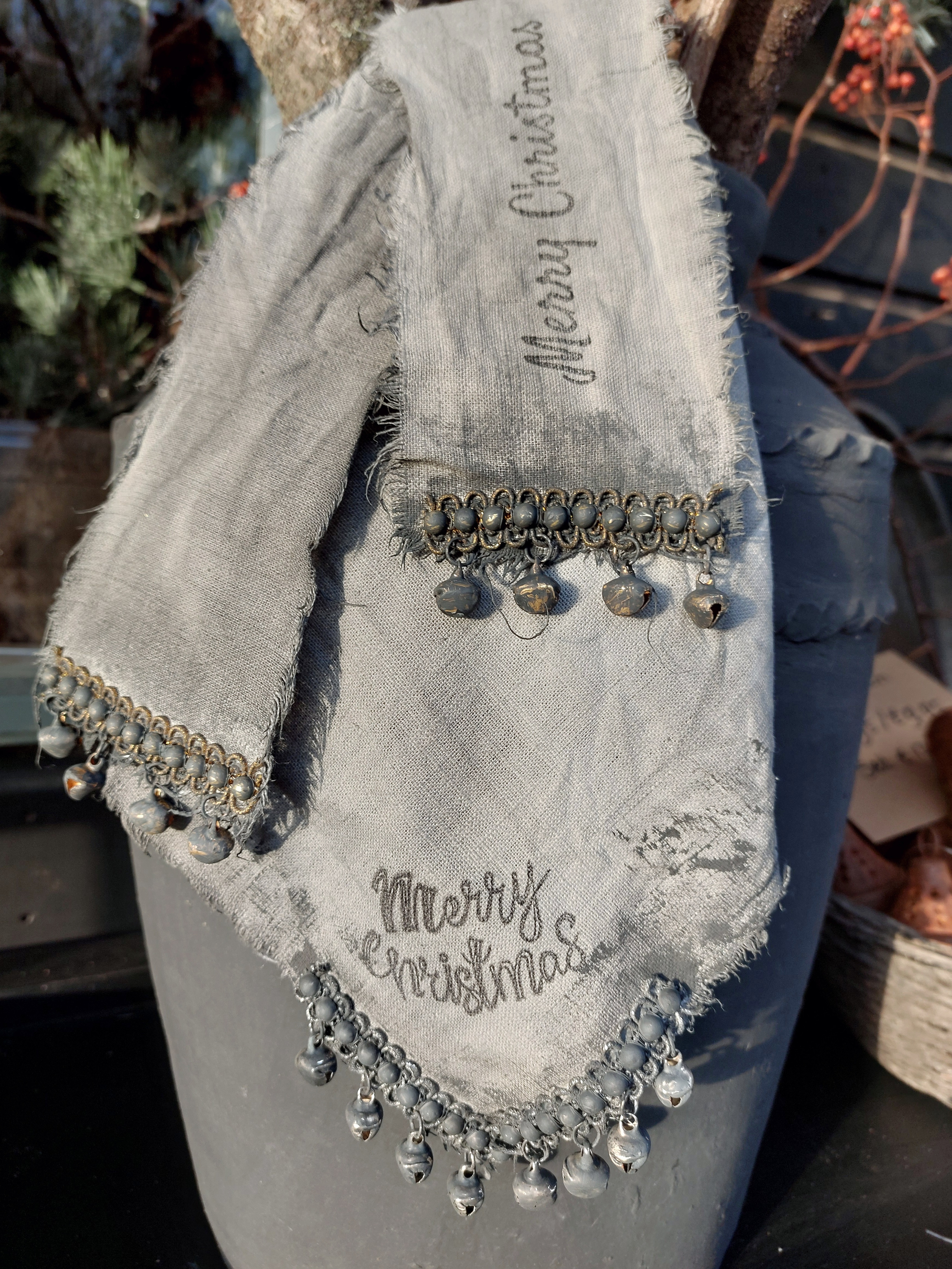 Lint kalkdoek grijs met belletjes Merry Christmas - BLOEM en Puur at Home