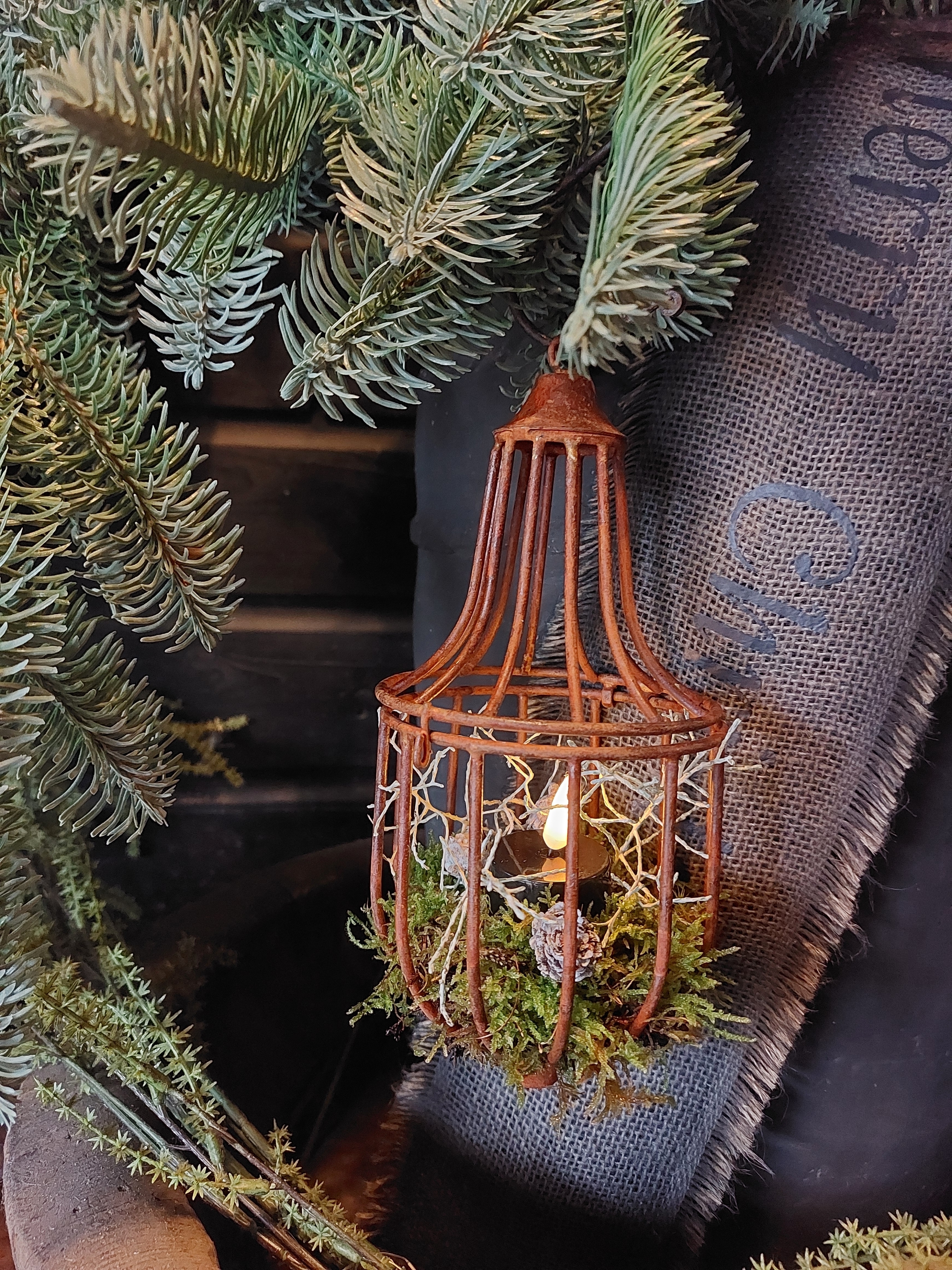 Stoere roestige hanger in de vorm van een kroonuchter.