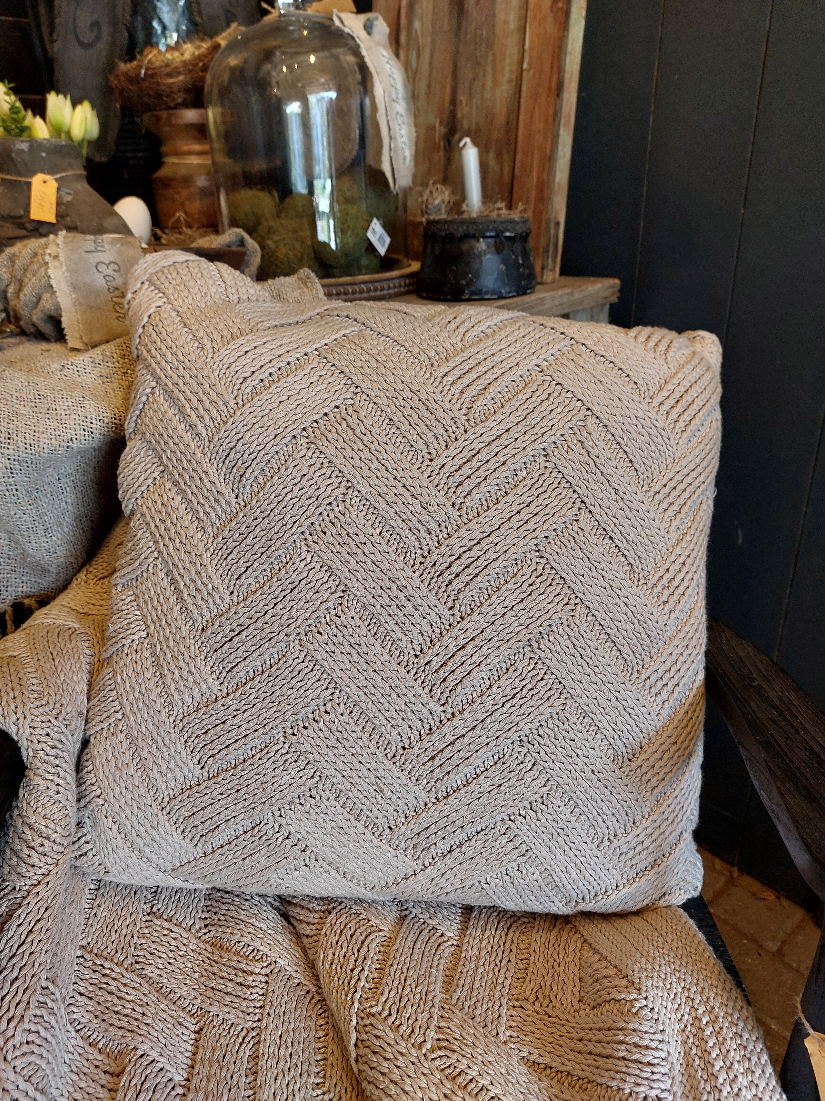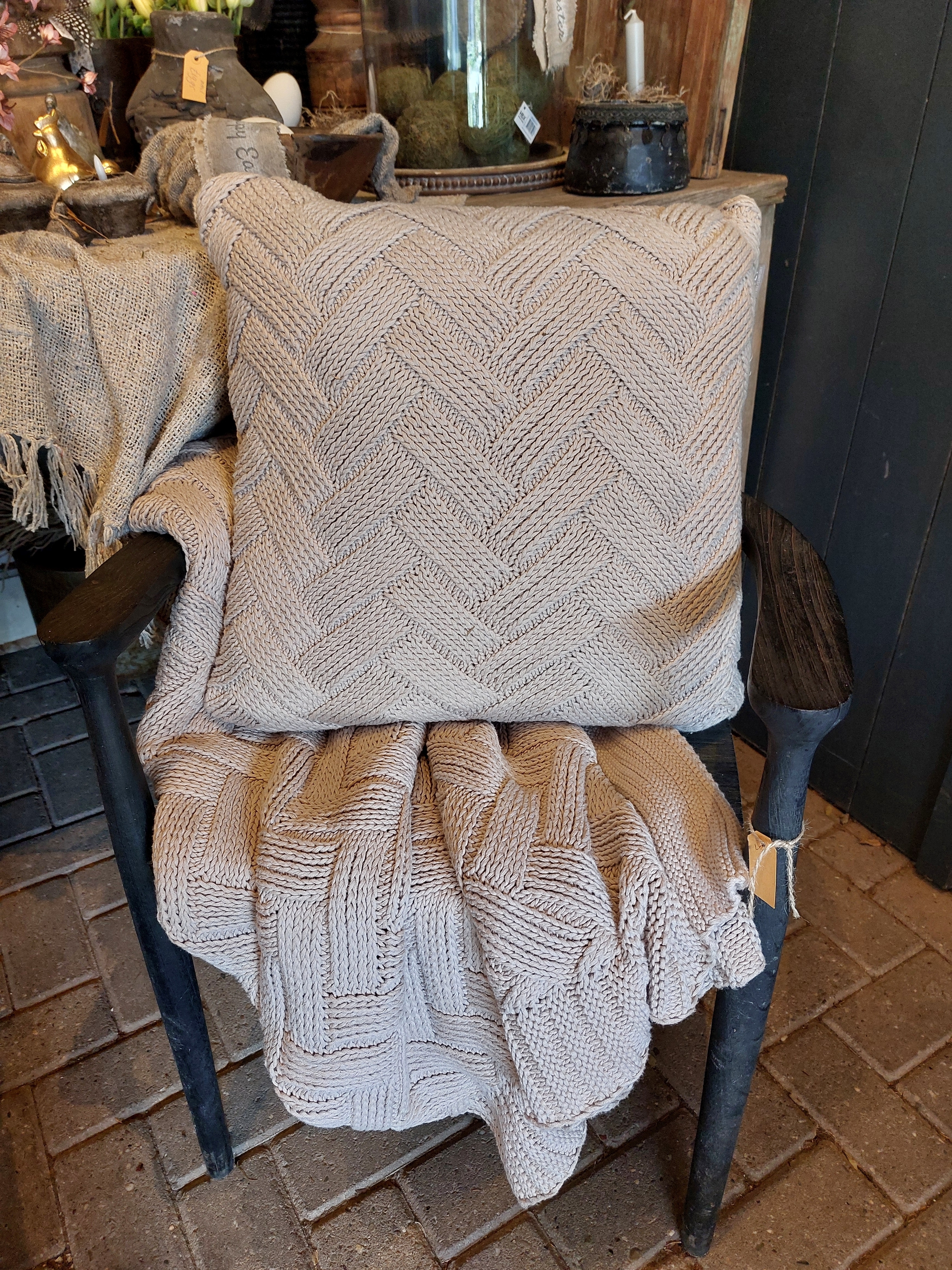 De set bestaat uit een kussen en plaid.