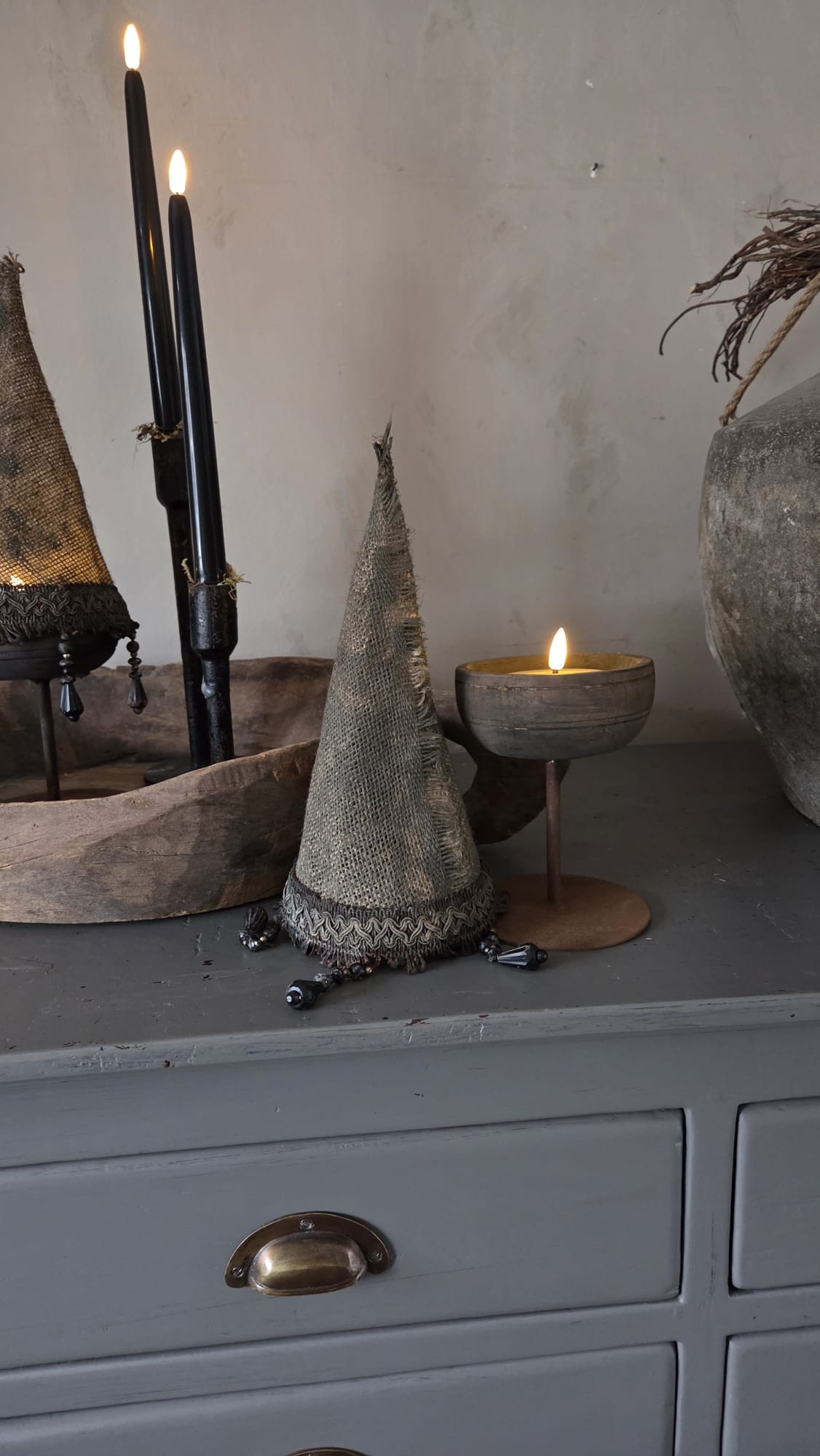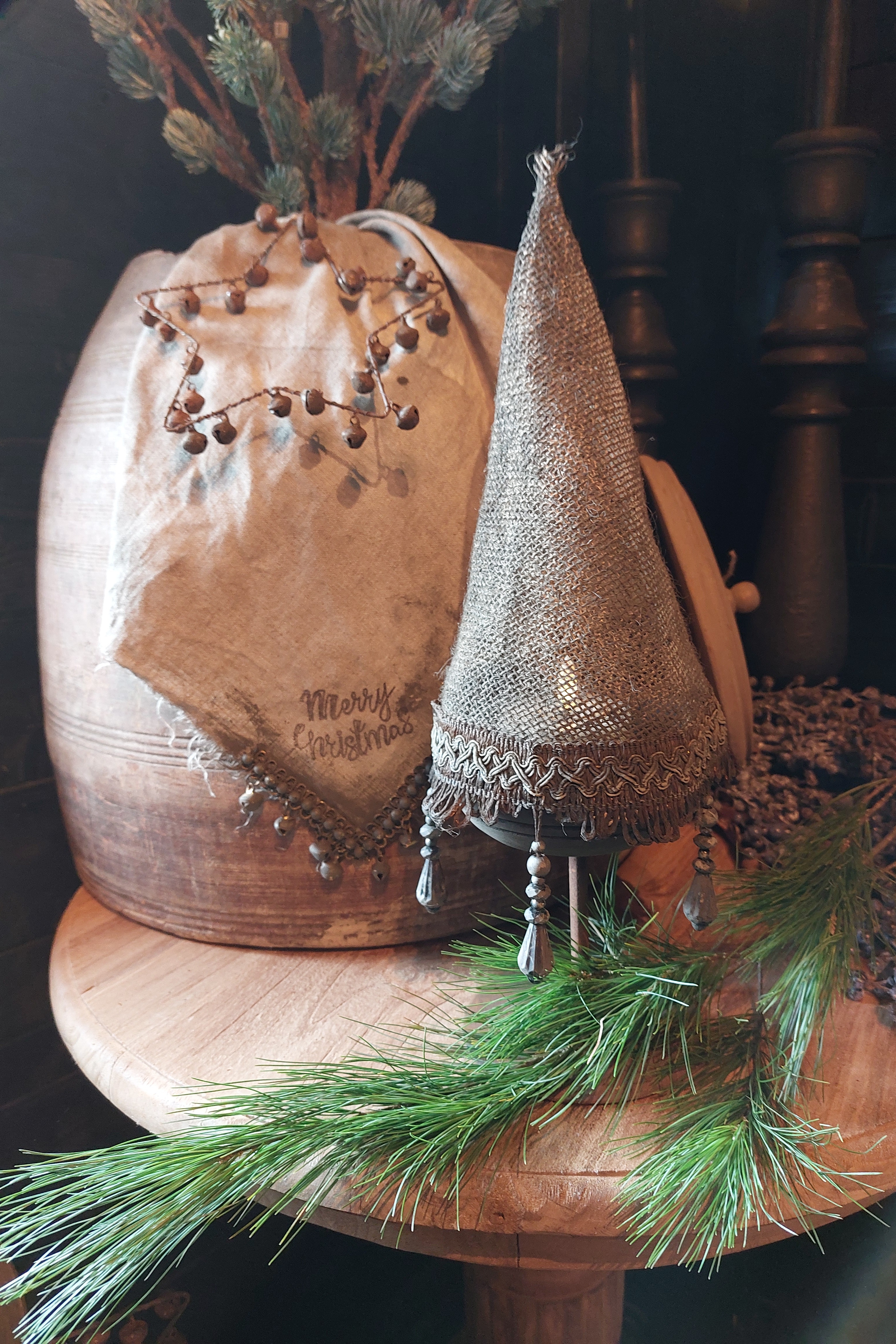 Compleet met voetje, waar een led waxinelichtje in kan. Het "boompje" is afgewerkt met kralen.