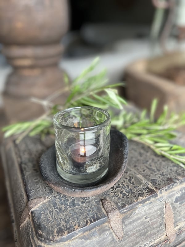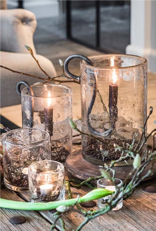 Kracht, klasse en luxe. Dat stralen deze mooie windlichten uit van Puur Wonen. Dik mondgeblazen glas. De metal chips dwarrelen in het glas. Elk stuk is uniek Afm.: 7 x7 cm..